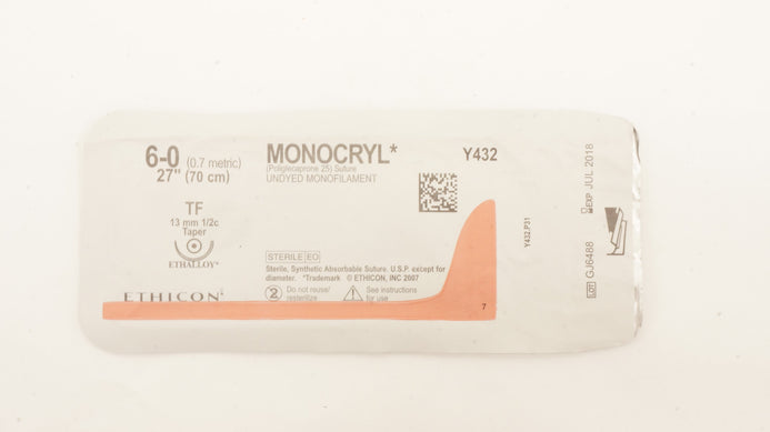 - Ethicon Y432 6-0 MONOCRYL Stre Undyed TF 13mm 1/2c Taper, 27inch (x)