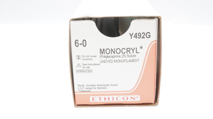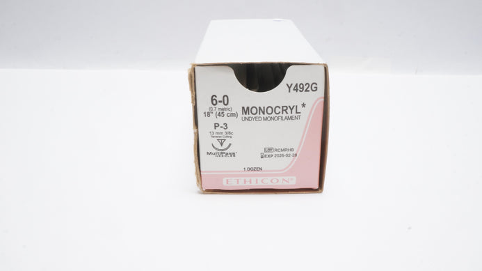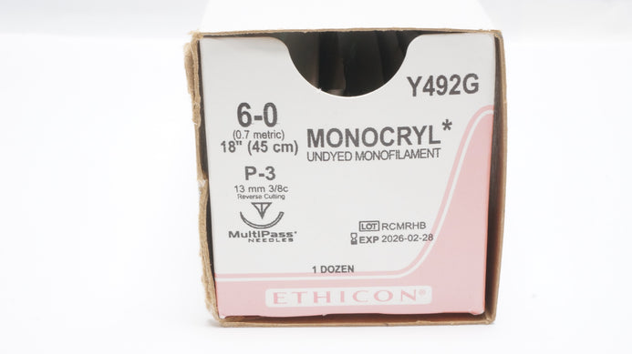 - Ethicon Y492G 6-0 MONOCRYL UNDYED 18inch P-3 13mm Reverse Cutting - Box of 6