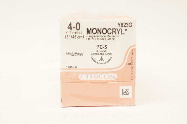 - Ethicon Y823G Monocryl Poliglecaprone 25 Absorbable Stre,4-0,PC-5 (x) -Box of 12
