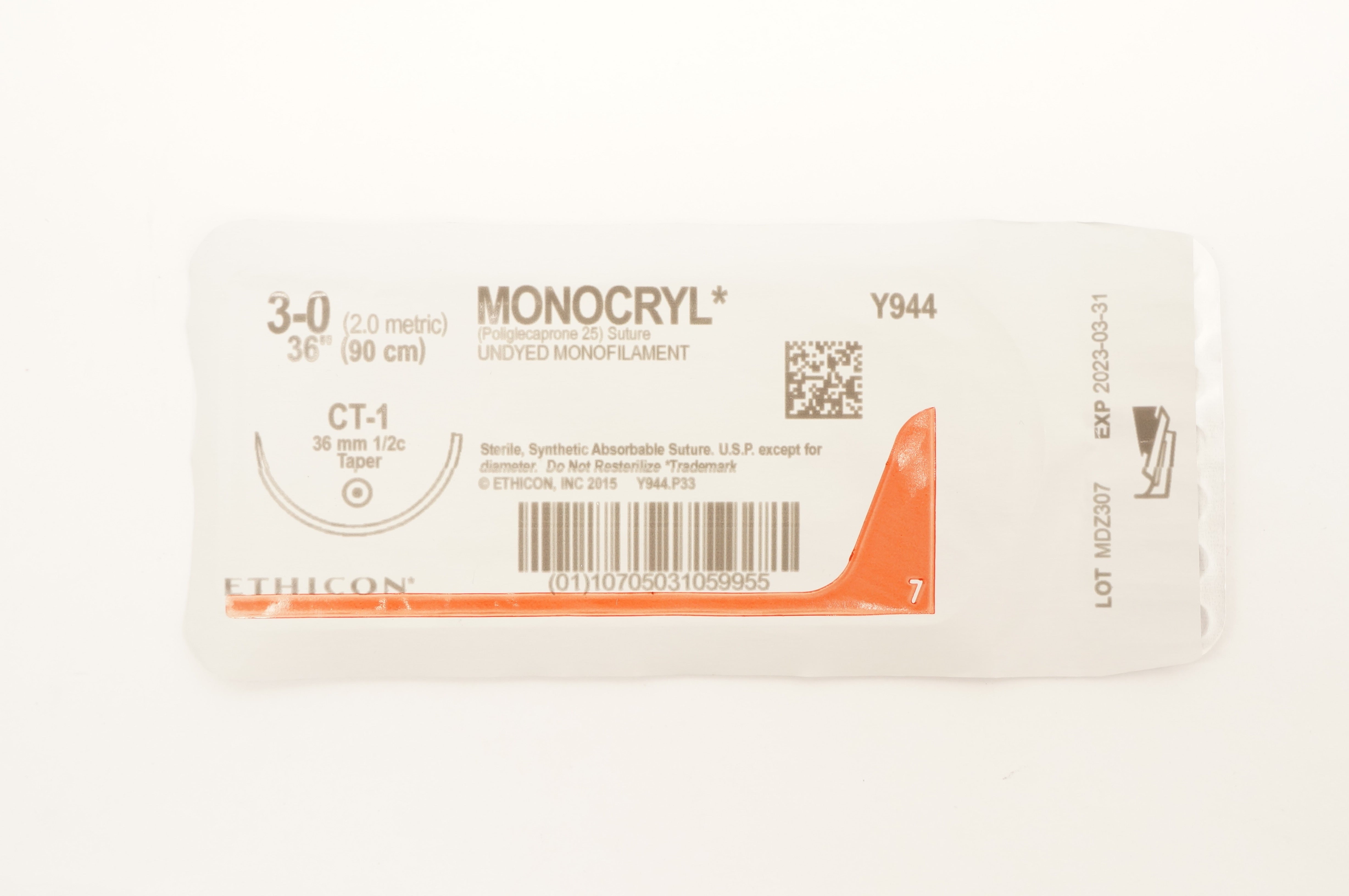 - Ethicon Y944 3-0 Monocryl Stre CT-1 36mm 1/2c Taper 36 inch