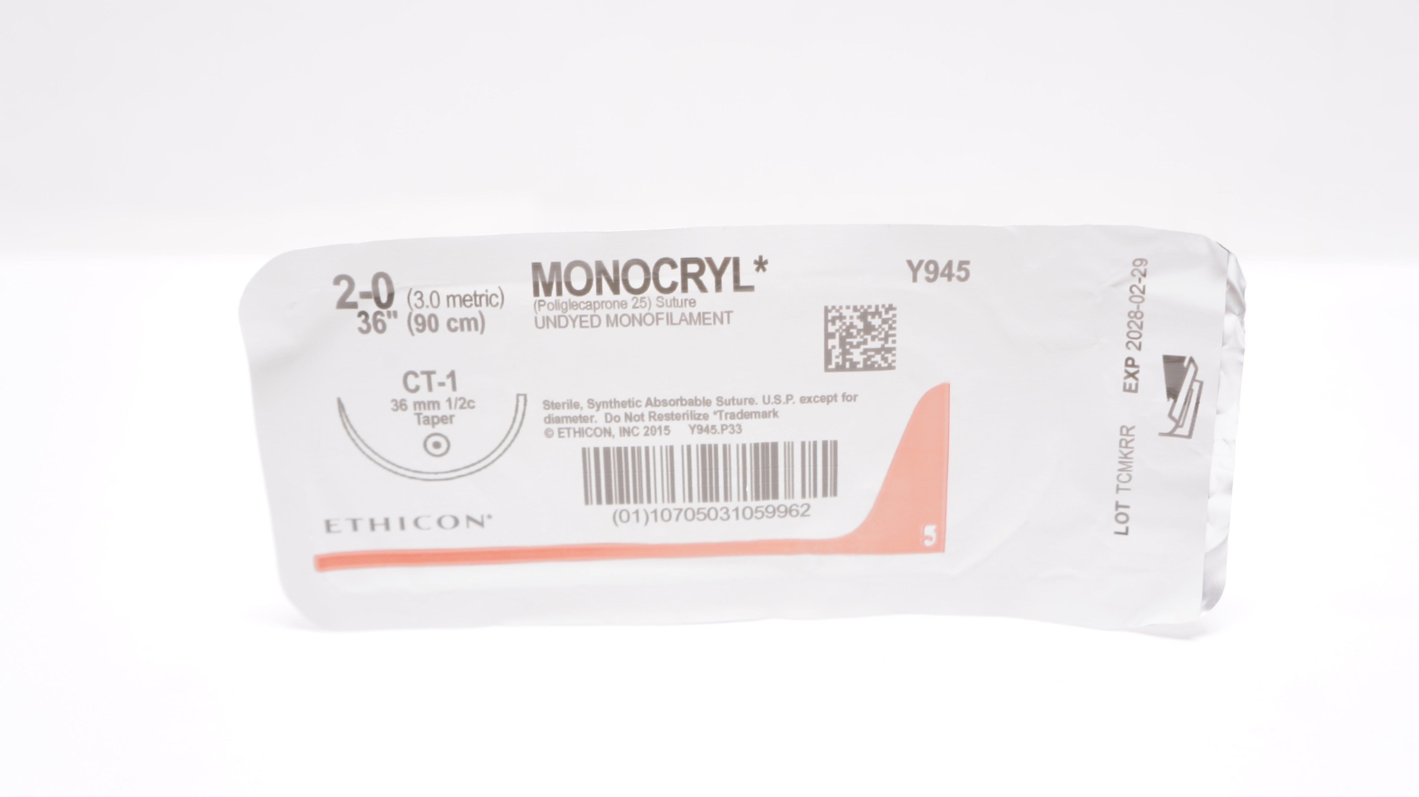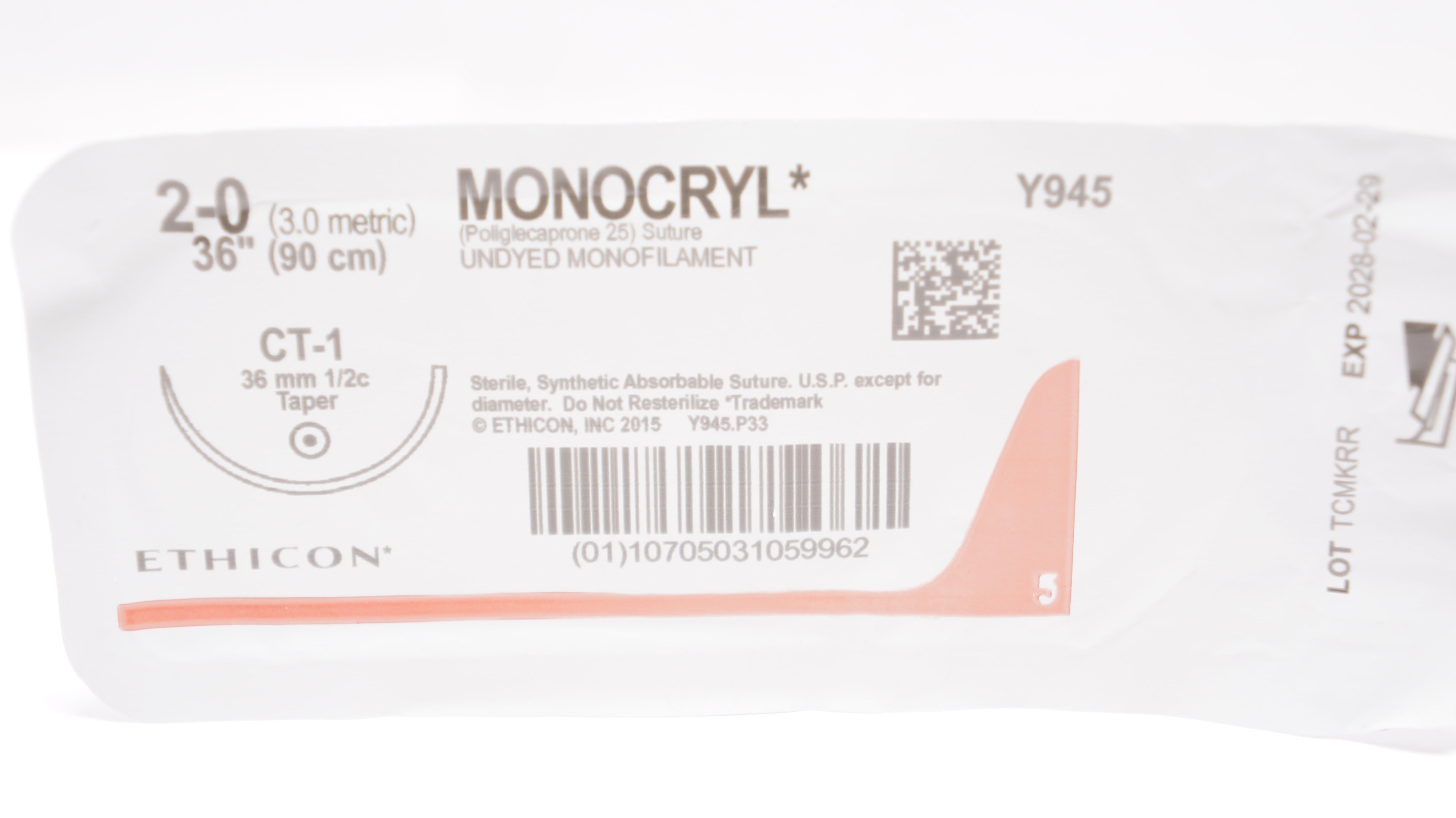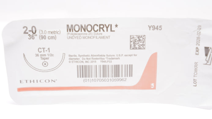 Ethicon Y945 2-0 MONOCRYL Poliglecaprone 25 Stre CT-1, 36mm 1/2c Taper, 36inch