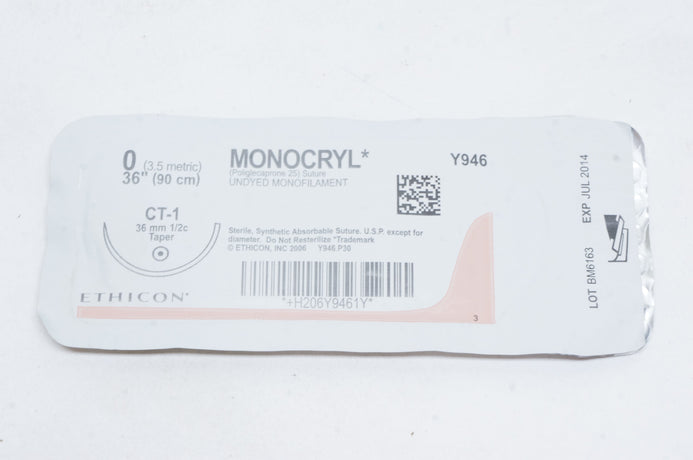 - Ethicon Y946 0 MONOCRYL, CT-1, 36mm 1/2c Taper, 36inch (x)