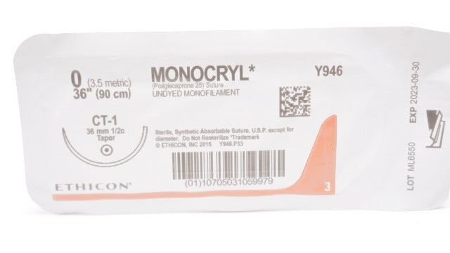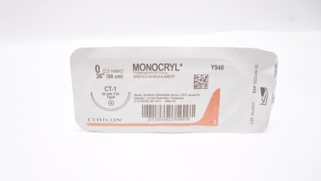 - Ethicon Y946 0 MONOCRYL Poliglecaprone Stre CT-1, 36mm 1/2c Taper, 36inch