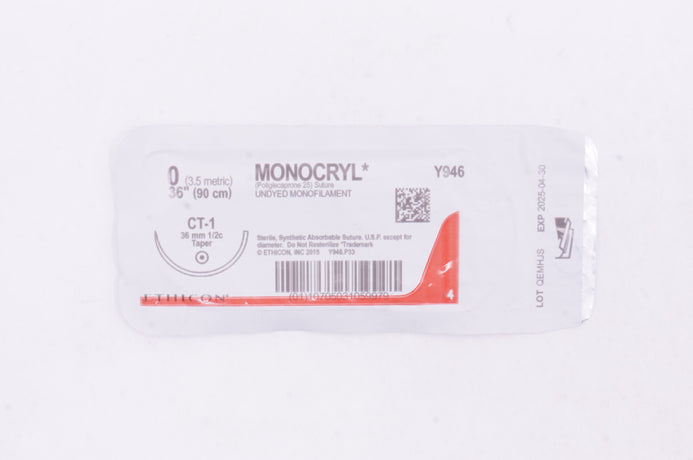 Ethicon Y946 0 MONOCRYL, Undyed Monofilament, CT-1, 36mm 1/2c Taper, 36inch