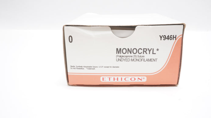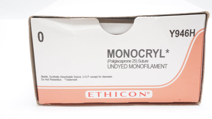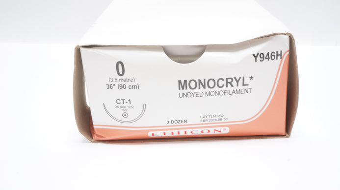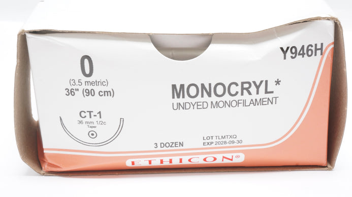 - Ethicon Y946H 0 Monocryl Monofilament CT-1 36mm 1/2c Taper 36inch - Box of 36