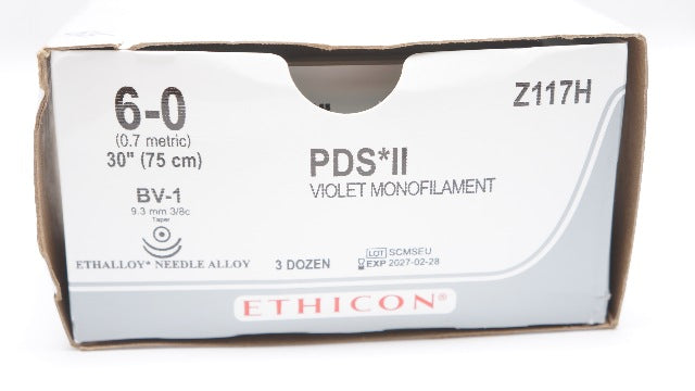 - Ethicon Z117H 6-0 PDS II Stre BV-1 9.3mm 3/8c Taper 30inch - Box of 33