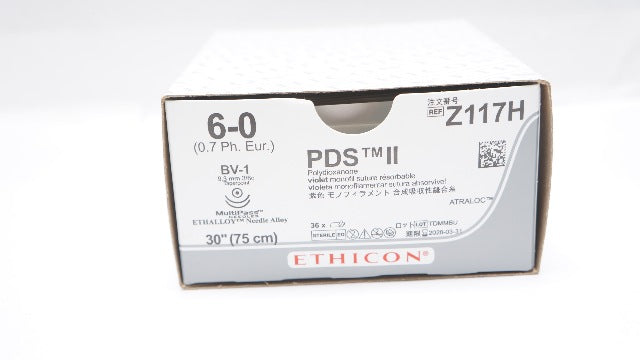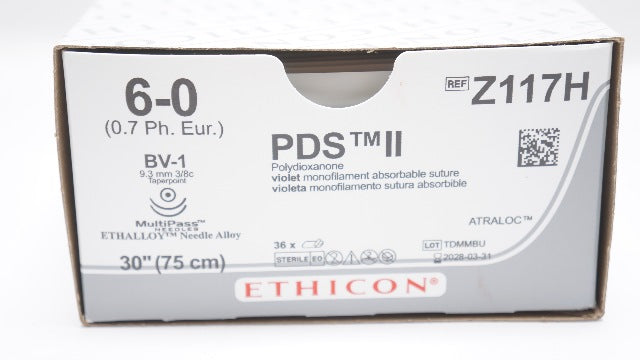 - Ethicon Z117H 6-0 PDS II Stre BV-1 9.3mm 3/8c Taperpoint 30inch - Box of 36