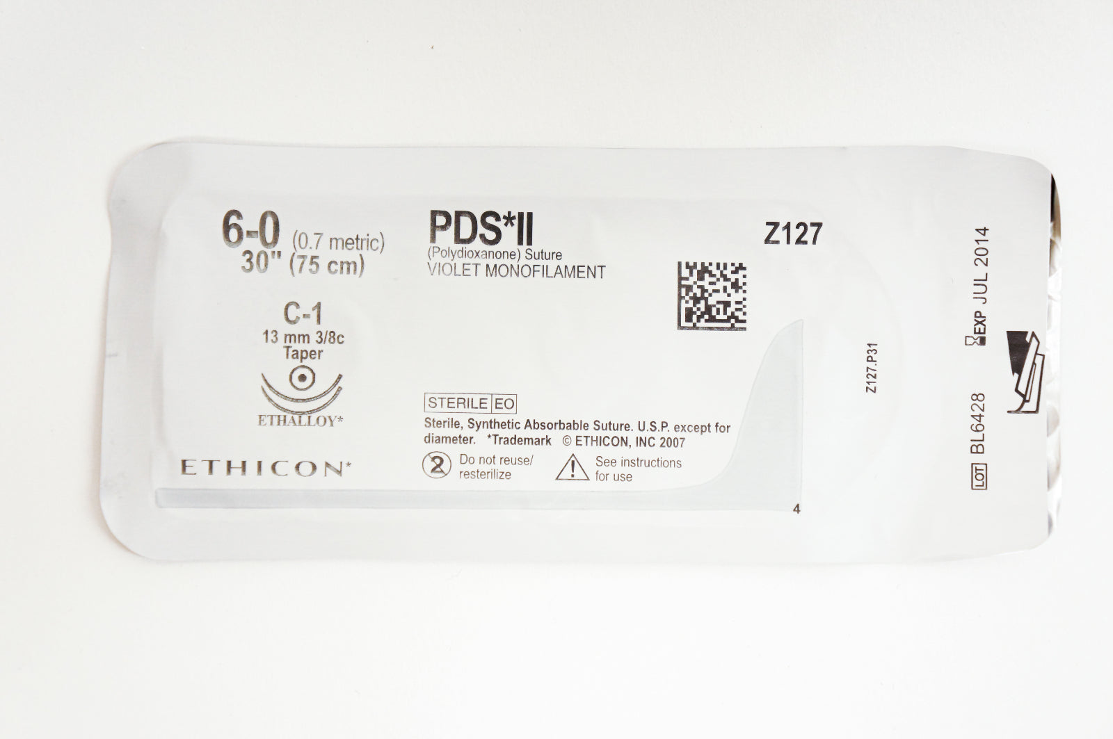 Ethicon Z127 6-0 PDS II, C-1, 13mm 3/8c Taper, 30inch (x)