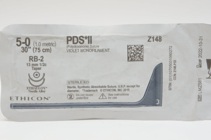 Ethicon Z148 5-0 PDS II, RB-2, 13mm 1/2c Taper, 30inch