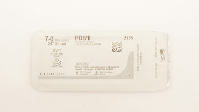 Ethicon Z155 7-0 PDS II Polydioxanone Suture Violet Monofilament BV-1 9.3mm 3/8c Taper, 24 inch