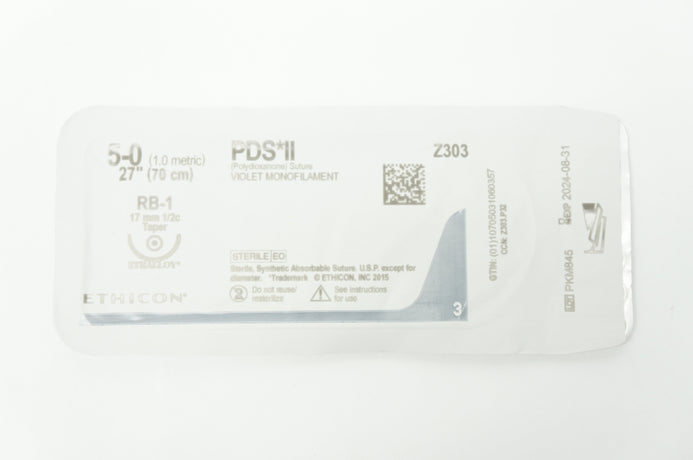 - Ethicon Z303 5-0 PDS II RB-1 17mm 1/2c Taper 27 inch