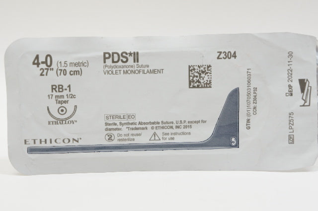 Ethicon Z304 4-0 PDS II, RB-1, 17mm 1/2c Taper, 27inch