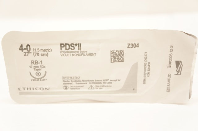 - Ethicon Z304 4-0 PDS II Violet Monofilament Stre RB-1 17mm 1/2c Taper, 27inch