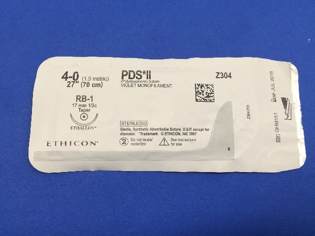 Ethicon Z304 PDS II, RB-1 Taper, Violet Monofilament 27", Size 4-0