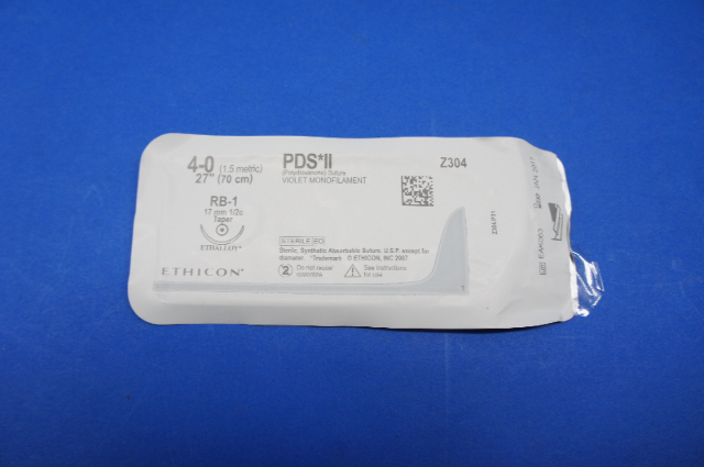 Ethicon Z304H PDS II, Taper Point, Absorbable, RB-1 17mm, Violet Monofilament 27" 70cm, Size: 4-0