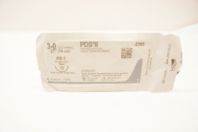 - Ethicon Z305 3-0 PDS II Polydioxanone Stre RB-1 17mm 1/2c Taper, 27inch (x)