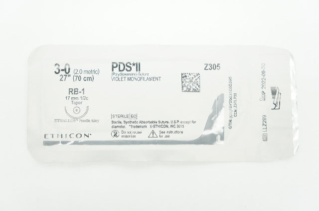 - Ethicon Z305 3-0 PDS II, RB-1, 17mm 1/2c Taper, 27inch