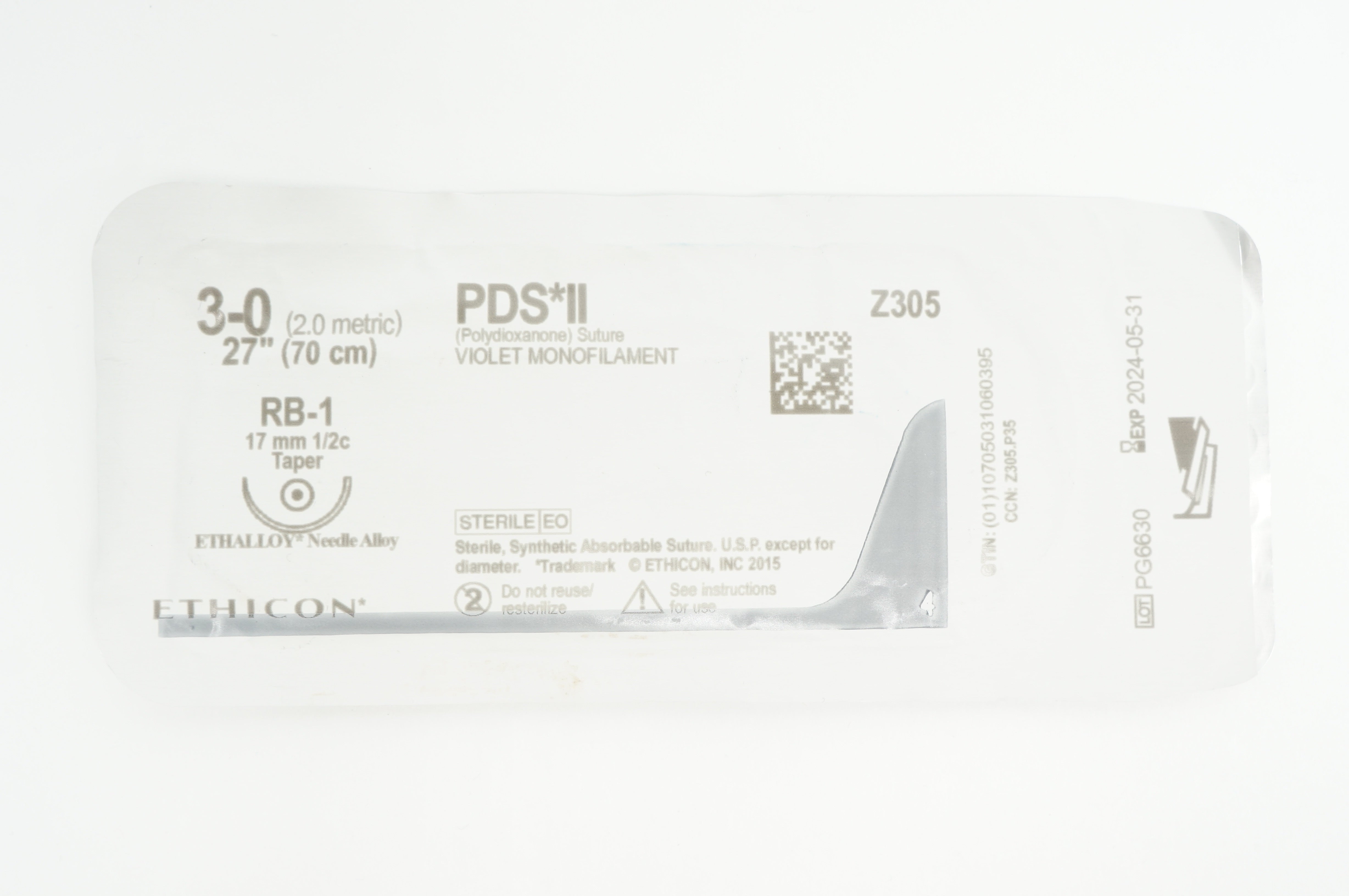 - Ethicon Z305 3-0 PDS II VIOLET MONOFILAMENT RB-1 17mm 1/2c Taper, 27inch