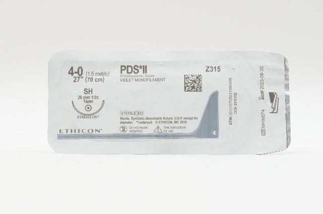 Ethicon Z315 4-0 PDS II Polydioxanone Suture Violet Monofilament SH 26mm 1/2c Taper, 27inch