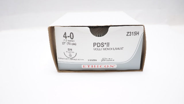 Ethicon Z315H 4-0 PDS II Polydioxanone Suture Violet Monofilament SH 26mm 1/2c Taper, 27inch