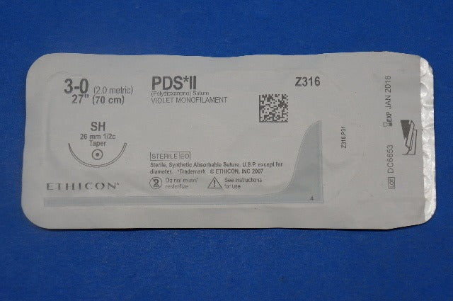 Ethicon Z316 3-0 PDS II, SH 26mm 1/2c Taper, Violet Monofilament, 27