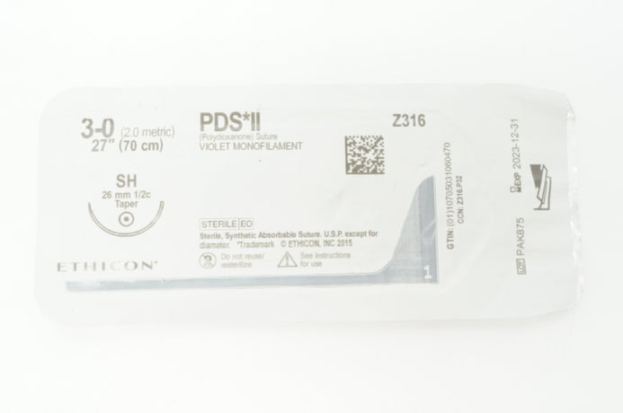 Ethicon Z316 3-0 PDS II VIOLET MONOFILAMENT SH 26mm 1/2c Taper, 27inch