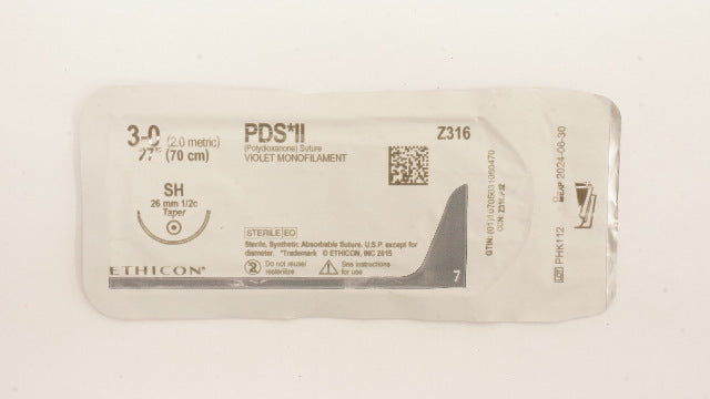 Ethicon Z316 3-0 PDS II Polydioxanone Suture Violet Monofilament SH 26mm 1/2c Taper, 27 inch