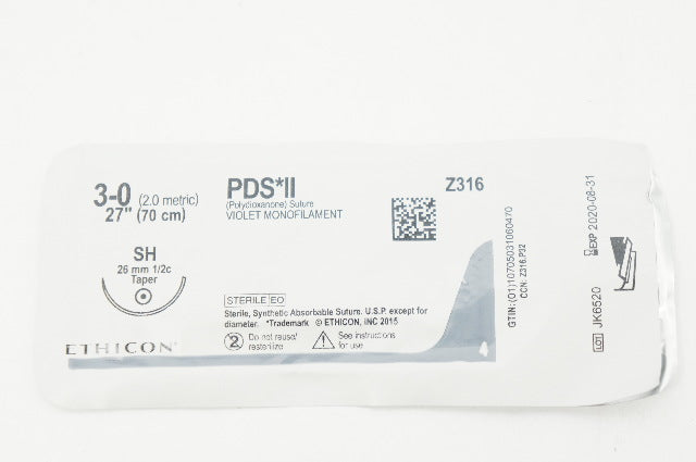 - Ethicon Z316 3-0 PDS II Violet Monofilament Stre SH 26mm 1/2c Taper 27inch (x)