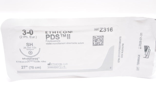 Ethicon Z316 3-0 PDS II Polydioxanone Violet Monofilament Absorbable Suture SH 26mm 1/2c Taperpoint 27inch