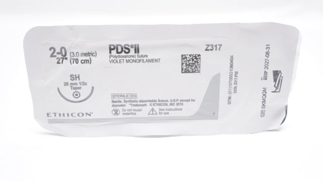 Ethicon Z317 2-0 PDS II Polydioxanone Stre SH 26mm 1/2c Taper 27inch (x)