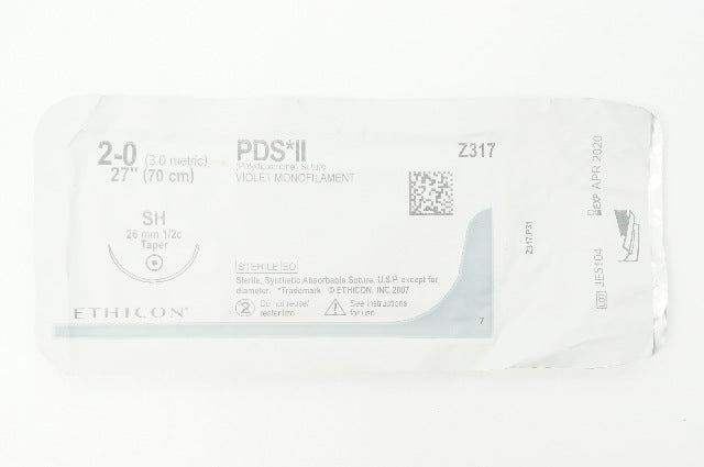 Ethicon Z317 2-0 PDS II VIOLET MONOFILAMENT SH 26mm 1/2c Taper, 27in (x)
