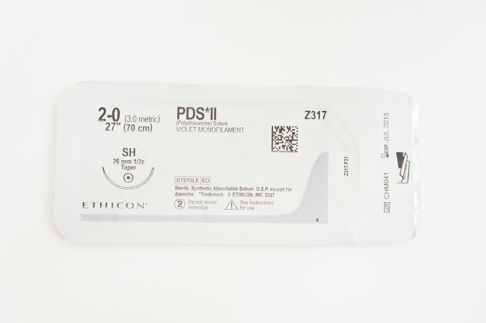 Ethicon Z317H 2-0 PDS II, SH, 26mm 1/2c Taper, 27inch (x) ~ Box of 36