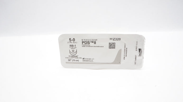 Ethicon Z320 5-0 PDS II Polydioxanone Suture Violet Monofilament RB-1 17mm 1/2c Taperpoint 30inch