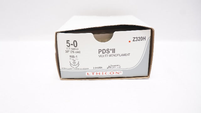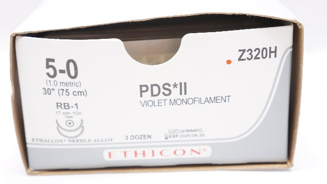 Ethicon Z320H 5-0 30in PDS II Violet Monofilament RB-1 17mm 1/2c Tap-Box of 36