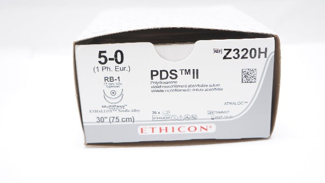 - Ethicon Z320H 5-0 PDS II Stre RB-1 17mm 1/2c Taper 30inch - Box of 35