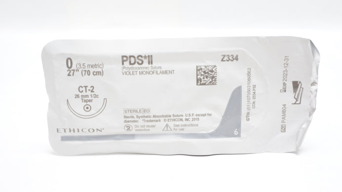 - Ethicon Z334 0 PDS II VIOLET MONOFILAMENT CT-2 26mm 1/2c Taper, 27inch (x)
