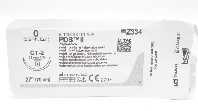 - Ethicon Z334 0 PDS II VIOLET MONOFILAMENT Stre CT-2 26mm 1/2c Taperpoint 27inch
