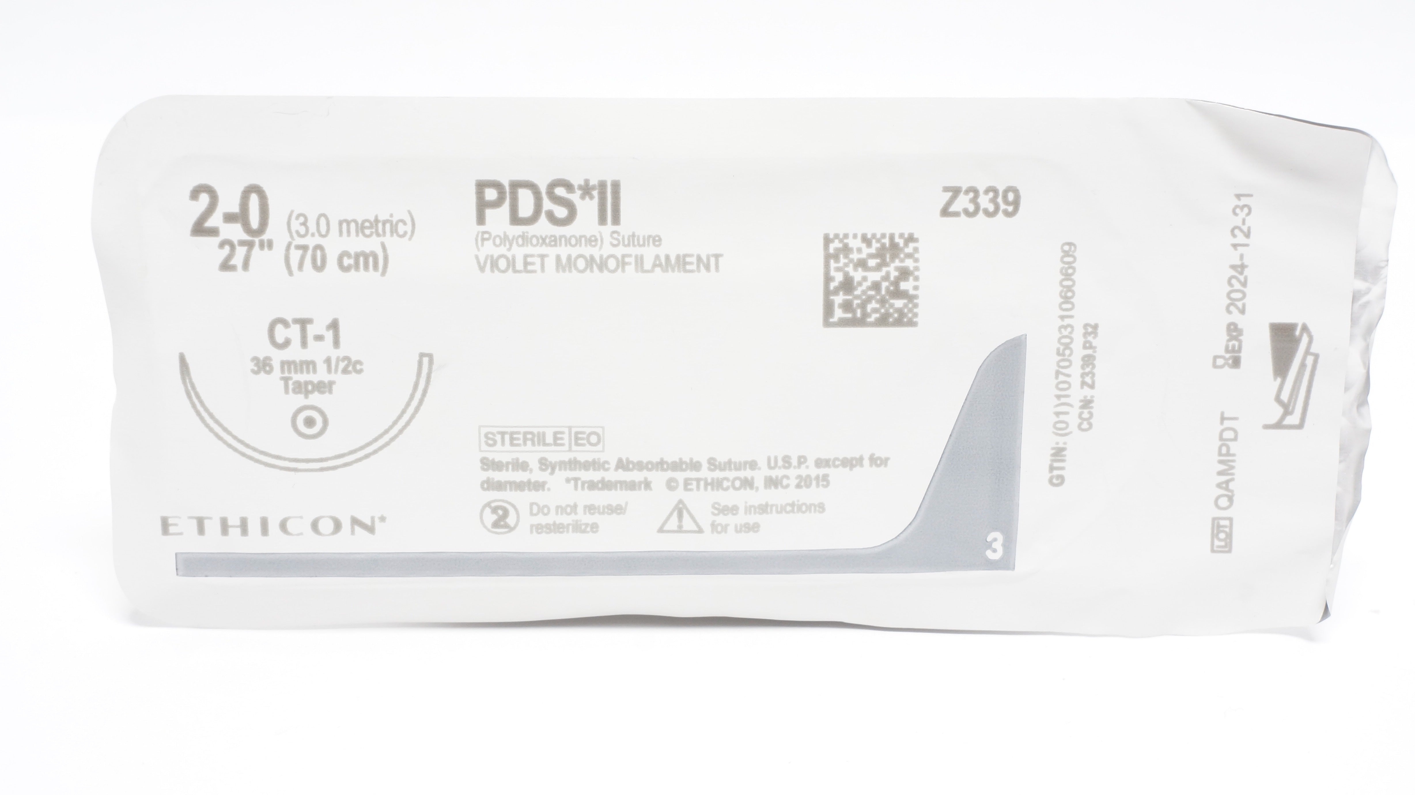 Ethicon Z339 2-0 PDS II, CT-1, 36mm 1/2c Taper, 27inch (x)