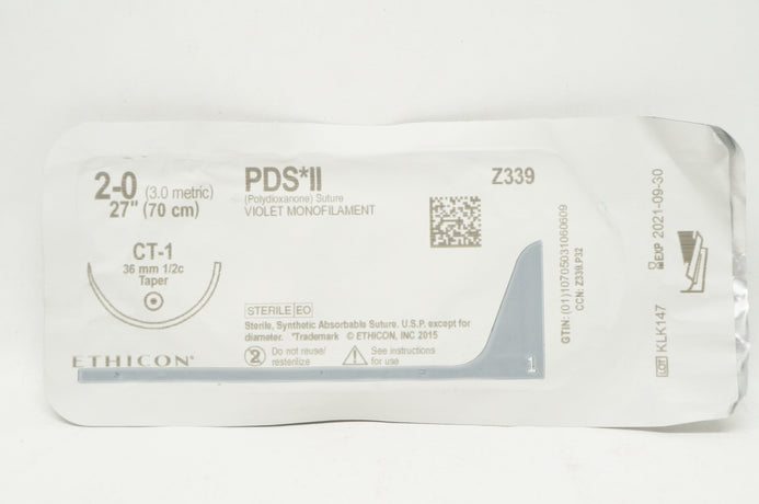 Ethicon Z339 2-0 PDS II Polydioxanone Stre CT-1 36mm 1/2c Taper, 27inch (x)