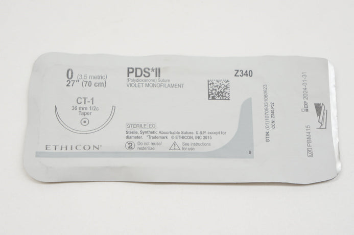 Ethicon Z340 0 PDS II Polydioxanone Stre CT-1, 36mm 1/2c Taper, 27inch (x)