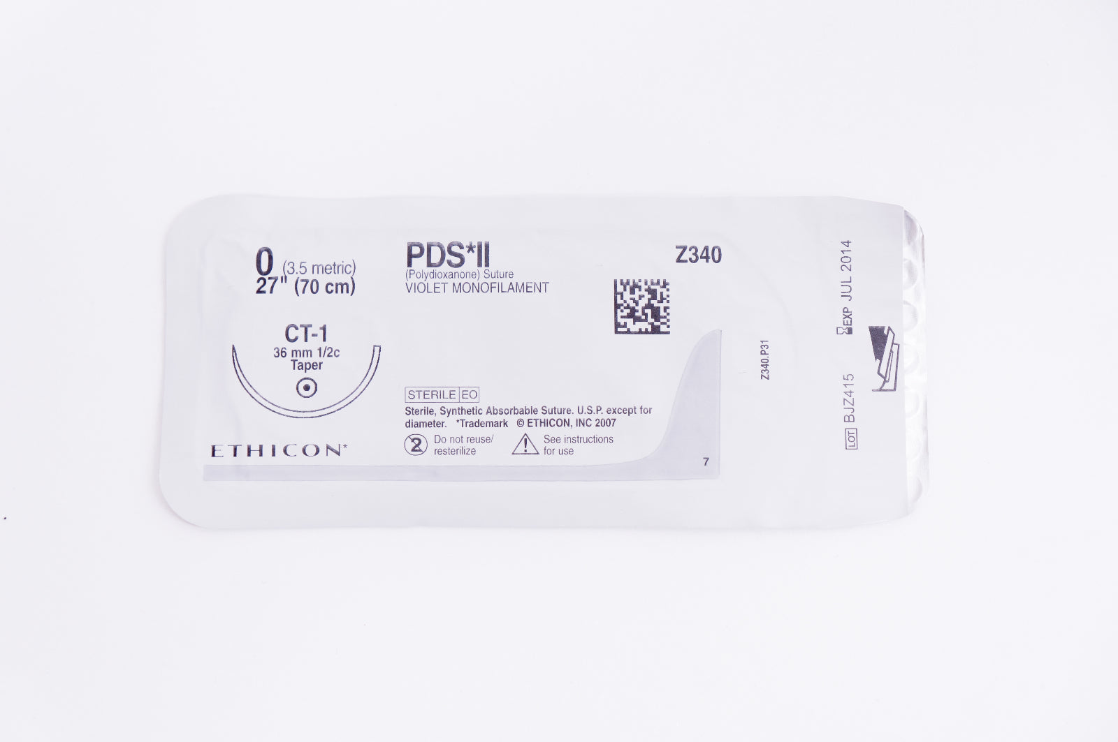 Ethicon Z340 0 PDS II, CT-1, 36mm 1/2c Taper, 27inch (x)