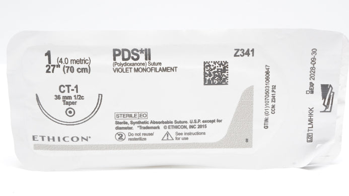 - Ethicon Z341 1 PDS II Polydioxanone Stre CT-1 36mm 1/2c Taper, 27inch