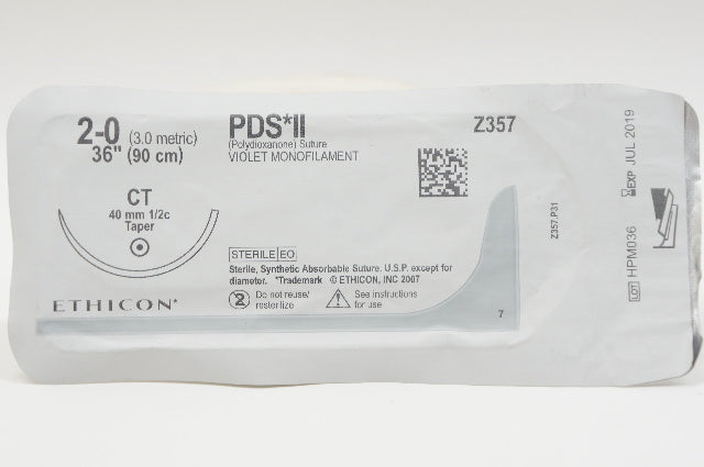 Ethicon Z357 2-0 PDS II, CT, 40mm 1/2c Taper, 36inch (x)