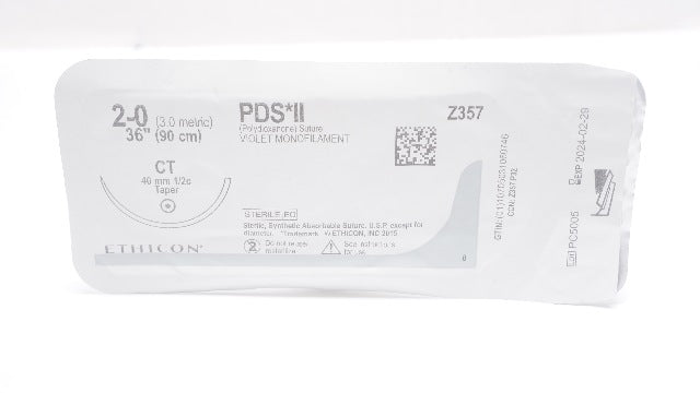 Ethicon Z357 2-0 PDS II Violet Monofilament CT 40mm 1/2c Taper, 36inch (x)