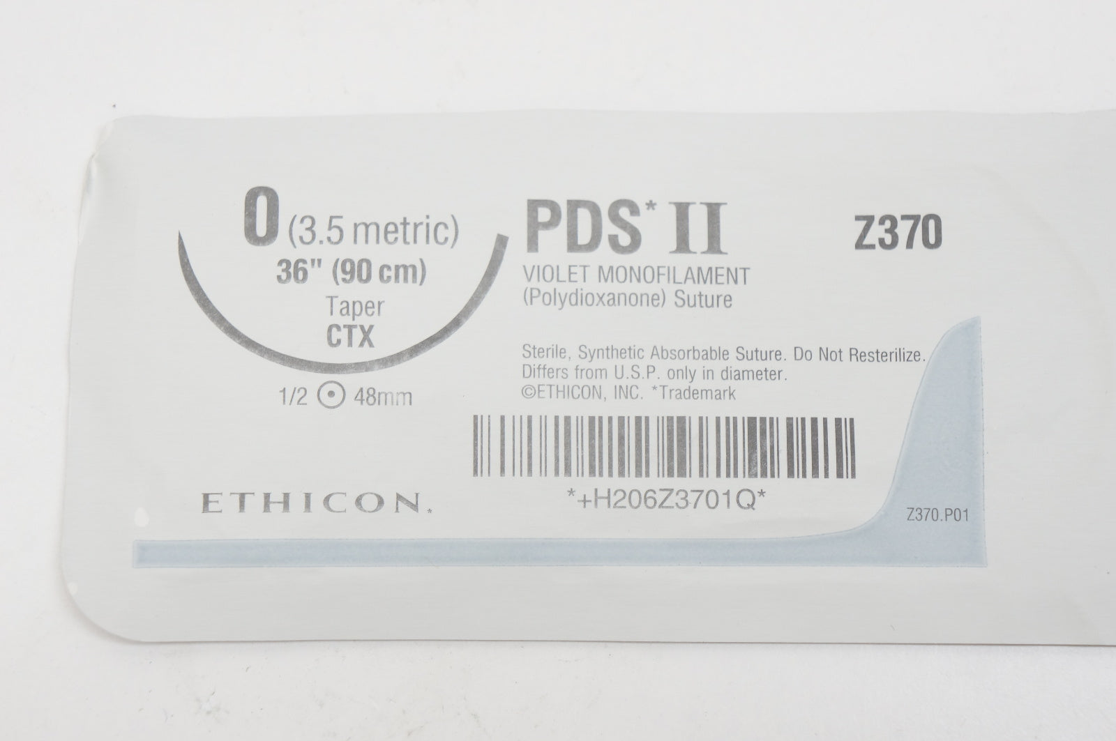 Ethicon Z370 0 PDS II, Violet Monofilament, CTX, 1/2 48mm, 36inch