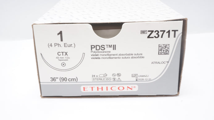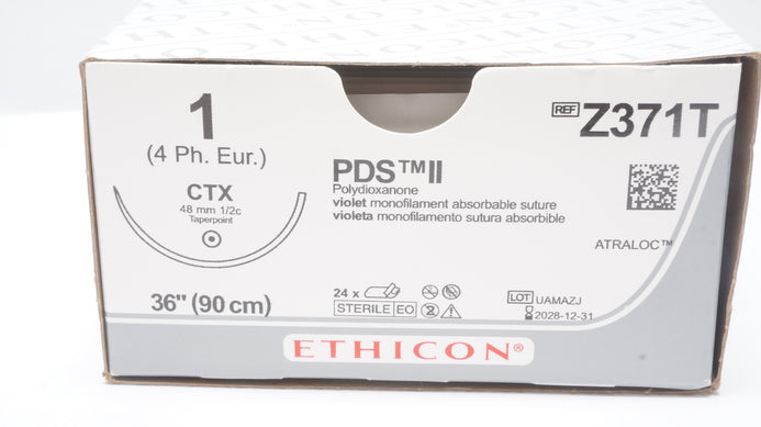 - Ethicon Z371T 1 PDS II Polydioxanone Stre CTX 48mm 1/2c Taperpoint - Box of 25