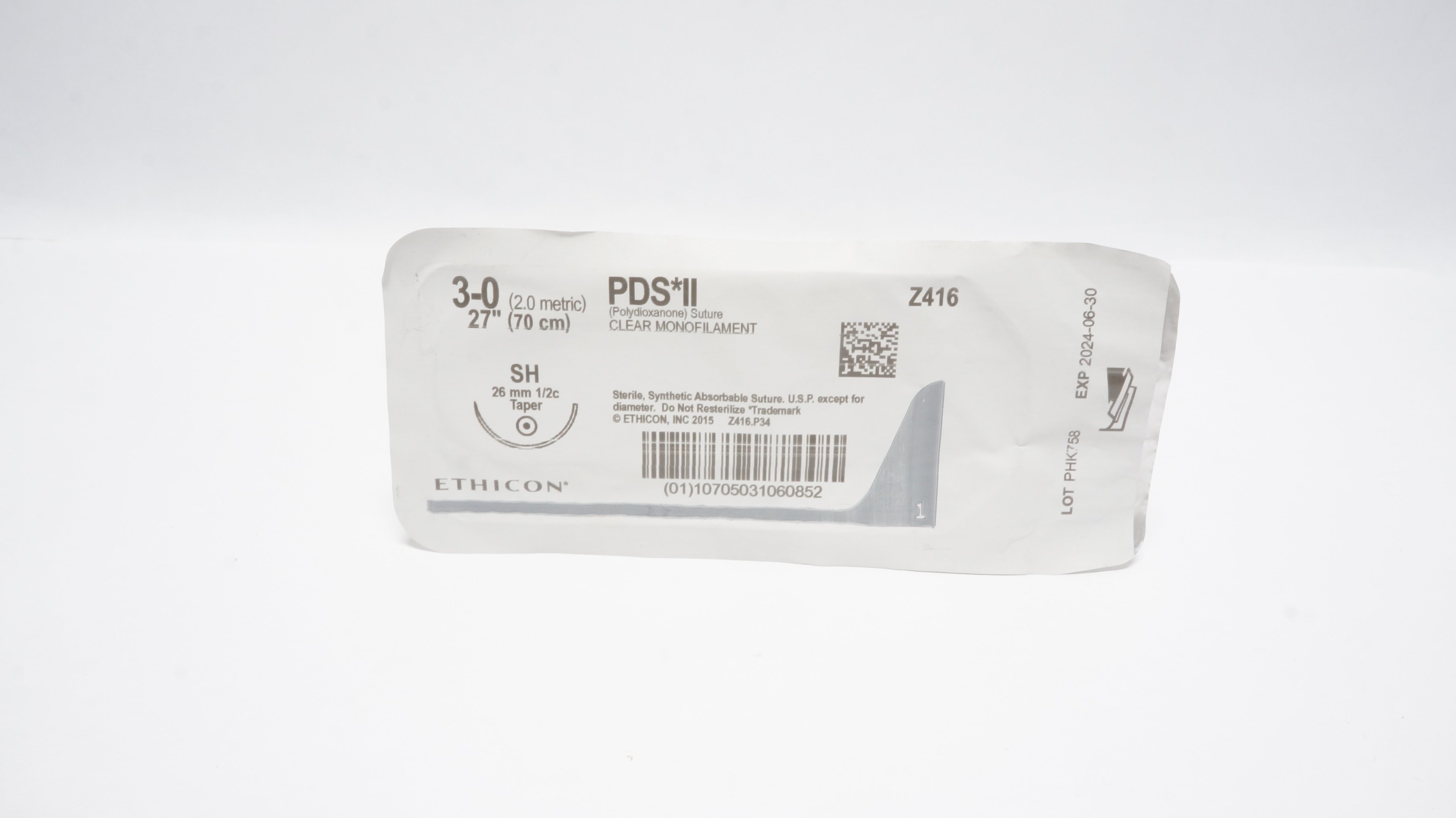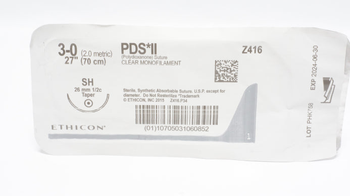 - Ethicon Z416 3-0 PDS II Polydioxanone Stre SH 26mm 1/2c Taper 27inch (x)