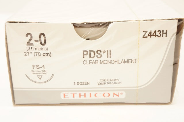 Ethicon Z443H 2-0 PDS II Stre FS-1 24mm 3/8c Reverse Cutting, 27inch - Box of 36