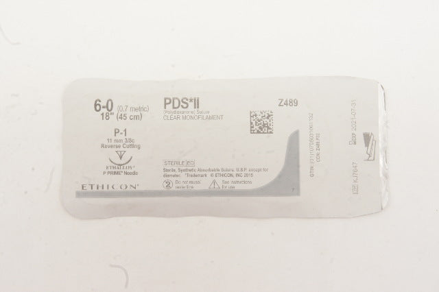 Ethicon Z489 6-0 PDS II CLEAR MONOFILAMENT P-1 11mm 3/8c, 18inch