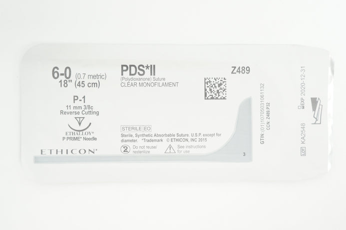 Ethicon Z489 6-0 PDS II CLEAR MONOFILAMENT P-1 11mm 3/8c Reverse Cutting, 18inch